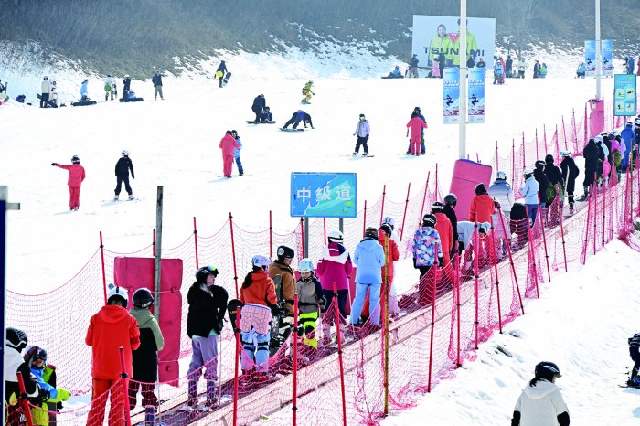 2月13日,游客在青岛西海岸新区融创藏马山滑雪场游玩。随着春节假期临近,青岛各大滑雪场陆续迎来游客高峰。当地以“冰雪+文化”“冰雪+旅游”聚人气、促消费、添年味。 新华社图